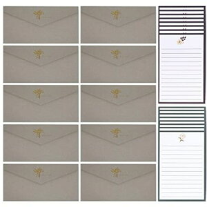 封筒 レターセット 10枚セット おしゃれ 高級 金箔をきせる アンティーク調 メッセージカード/案内状/挨拶状/ポストカード/招待状 郵便番号枠なし ビジネス用 結婚式 業務用封筒 事務用封筒 (グレ...