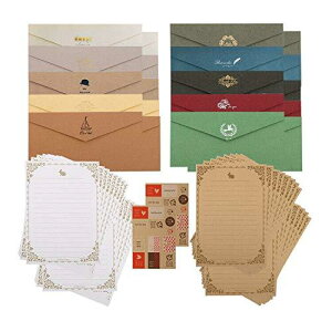 Sitengle レターセット 封筒 10色 便箋 手紙 クラフト用紙 アンティーク調 シンプル おしゃれ 箔押し 招待状 結婚式 お祝い手紙 挨拶状 お礼状用【レターセット内容】タイプA:封筒10枚(各色1枚)、便箋16枚(ホワイト...