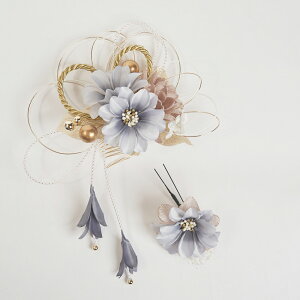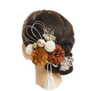造花とは違いドライフラワーは落ち着いた色合いで主張しすぎないのでどんな振袖とも合わせやすいです。トレンドの水引や金箔を合わせて華やかなスタイルに。 ※プリザーブドフラワーは時間経過と共に色あせます。 マムM:直径約5cm...
