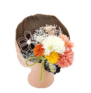 さまざまな要素を組み合わせることで、華やかさと愛らしさを兼ね備えたアイテムが揃っています。ピンポンマム、かすみ草、水引、樹脂フラワー、そしてパールをあしらったこのセットは、特別な日の装いにぴったりの選択肢です。 【簡...