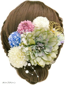 【個性的上品な髪飾りセット】ゴールドとシルバーの2色をご用意しており、つまみ細工、ふんわりリボン、可愛い造花や和玉、パールアレンジをあわせます。パールチェンはクネクネと形を変えられ、全体的に個性的で華やかな美しさを感じ
