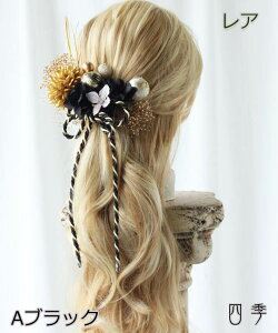商品説明 ゴールドマムにアジサイを合わせた髪飾りです。アジサイは3色からお選びください。黒金紐と和玉、水引を合わせた清楚で美しい髪飾りになります。 お花にはワイヤーが付いていますのでどんなヘアにも自在にアレンジができま