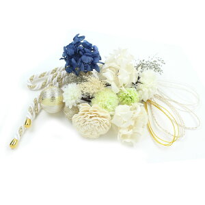 心に、花材や水引を組み合わせた華やかなデザイン。立体感と動きがあり、特別な日の装いをより一層引き立てます。 【カラー】ホワイト、ゴールド、ピンク、ブルー、パープルなど全7色をご用意。結婚式、成人式、卒業式...