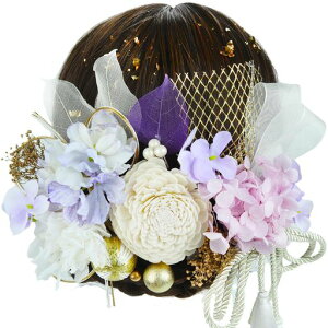 工夫されています。和玉、結び水引、組紐や金箔など単品との組み合わせが、ラグジュアリー感をプラスしています。 【選び抜かれた素材】髪飾りには、ドライフラワーや和玉、結び水引など、高品質の材料が使用されています...