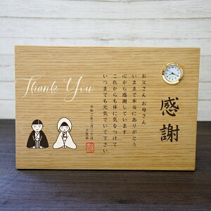 木製プレート型時計付きの感謝状です。 26cm×17.8cm×厚み1.5cmプレート型置き時計が感謝状になりました。 結婚式に両親、身内への感謝状としてお作り致します。 挙式が終わってもご自宅でずっと...