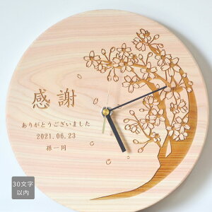 −−−−−−−−−−−−−−−−−−−−−−−−−−−−−−−− 桜イラスト入りヒノキ時計【自由文字入れOK】 ひのきの時計に立体的な桜のイラストでエレガント。 表面・裏面どちらも彫刻できますので、オリジナルティあふれる名