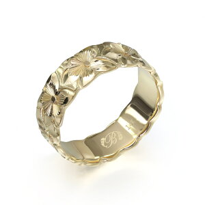 イエローゴールド 【リング幅】6mm 【リング厚さ】2.0mm 重厚な分、しっかりと奥深くデザインを彫り込む事が可能になり品質をお求めの方にはオススメです! オーダーメイドで作るハワイアンジュエリ...