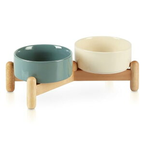 器です。食品グレードのセラミックボウルを使い、ペットの健康を守り。 【安定で滑り止め】重量感のある陶器製のスタンドタイプの食器は、重みがあるので動きにくいことが特長です。底部は竹製のベースがあるそし、ボウルがスライドするのを防ぎ...