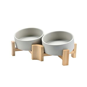 【送料無料】犬 餌入れ ボウル 15度 斜め 陶器 猫 えさ 皿 ペット 食器 水入れ 木製 ボウルスタンド付 高さ調整可能 フードボウル 食べやすい 小型犬 400ml グレーブランド色グレーモデル...