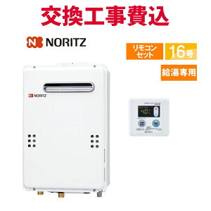 ノーリツ ガス給湯器屋外壁掛形(PS標準設置形)16号給湯専用エコジョーズボイスリモコン付属接続口径:15AユコアGQ-WSガス給湯器:GQ-C1634WS-BL-13A-15A×1工事費:CONST...