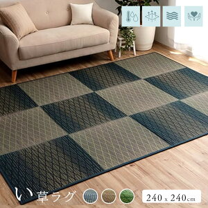 い草ラグ 大きな格子デザインと、小さなダイヤデザインがマッチした、おしゃれない草ラグ。中材にウレタンフォーム8mmがサンドしてありますので、クッション性があり、フローリングで使用しても底つき感なくご使用頂けます...