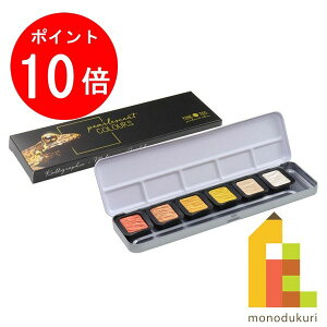 特別に精製された天然アラビアゴムと最高品質の真珠光沢・偏光顔料を使用して作られた水溶性絵具です。 パールカラーの6色セット。 メタルケース入り。