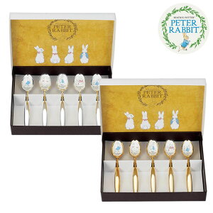 スプーンの5本セット♪皿中七宝シリーズは、スプーンの皿中に七宝でデザインされたピーターラビットの絵柄が可愛らしく描かれているカトラリーシリーズ。