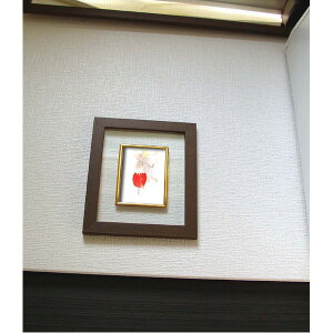見る人を和ませてくれる一枚です。淡い色使いで優しく描かれた、ちひろの可愛らしい絵をセットしたインチ額。落ち着いた茶色に金の枠組みの豪華なフレームです。ハガキサイズ(148×105mm)の写真などと差し替えもできます。スタンド式で飾