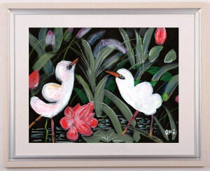 ●画家名:秋永清二 ●作品名:南国の鳥 ●絵のサイズ:W25,5×H18,5cm ●額装サイズ:W43,5×H34cm ●絵画の技法:ミクストメディア ●サイン:作家直筆サイン 秋永清二さんがミクスト...