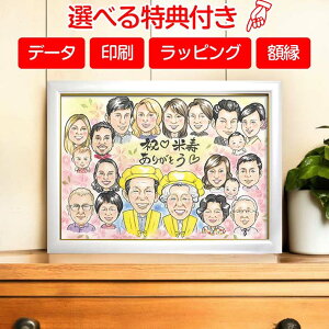 祝 60歳 還暦のお祝いに贈るオススメの似顔絵。子供、孫に囲まれた似顔絵は家族の絆が深まります。一期 プレゼント お祝い 還暦 古希 喜寿 傘寿 米寿 卒寿 白寿 百寿 長寿 祖父 祖母 おじいちゃん...