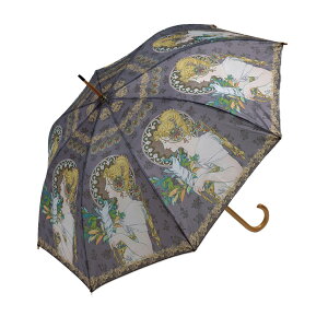 092069064 ITEM 商品名 名画 傘 アート 名入れ ギフト 雨傘 長傘 木製 持ち手 有名画家 アンティーク レディース おしゃれ モダン 木製ジャンプ傘 ミュシャ Mucha 蔦と夢想 ゾディアック...