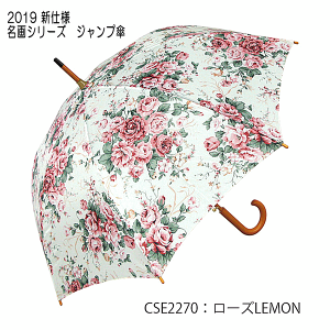 ナチュラルな雰囲気を残す木製ハンドルの名画ジャンプ傘。色鮮やかな名画が雨の日の気分を上げてくれます。