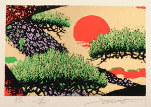 額装サイズ:W40×H30,5cm ●版画の技法:シルクスクリーン ●サイン:作家直筆鉛筆サイン ●シリアルナンバー:14/90 池上壮豊先生がシルクスクリーンの版画で描いた和の木の絵「松...