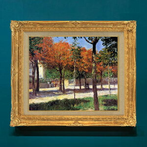 油絵 絵画 直筆仕上げ カイユボット リチャードギャロと彼の犬、プチジェヌヴィリエにて アートフレーム サイズ 額入りS:ブラウン 【油彩 布キャンバス 国内生産】 絵画 販売 風景画 321×271mm...