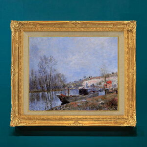 油絵 絵画 直筆仕上げ クロード・モネ オンフルールの舟曳き アートフレーム サイズ 額入りM 【油彩 布キャンバス 国内生産】 絵画 販売 風景画 511×418mm 複製画 送料無料 絵画 販売 インテリア...