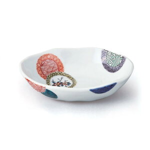 商品詳細 【九谷焼 色絵丸紋小判型小鉢】 寸法:170×145×H40mm 材質:陶器、磁器製品 生産国:日本(九谷焼) ♪九谷焼 鉢はこちら♪