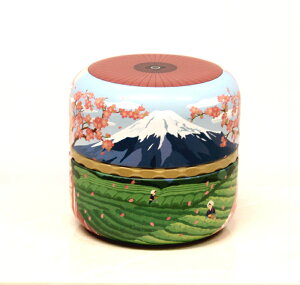 春の「富士山と茶畑の風景」と秋の「逆さ富士の風景」を絵画調に作った印刷缶 前面に春の富士山と茶畑の風景 後ろ面に秋の逆さ富士の風景とひとつの缶で2つの絵画調の景色が楽しめます。 スチール缶です。 中