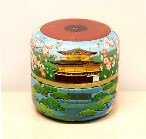 ★お茶は入っておりません 春の「金閣寺の風景」と秋の「清水寺の風景」を絵画調に作った印刷缶 前面に春の「金閣寺の風景」 後ろ面に秋の「清水寺の風景」とひとつの缶で2つの絵画調の景色が楽しめます。 スチール缶です。 中ブタはプ