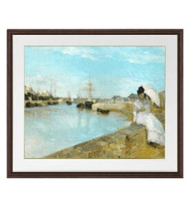 油絵 絵画 直筆仕上げ ベルト・モリゾ ロリアンの小さな港 アートフレーム サイズ 額入りS:ブラウン 【油彩 布キャンバス 国内生産】 絵画 販売 風景画 321×271mm 複製画 送料無料