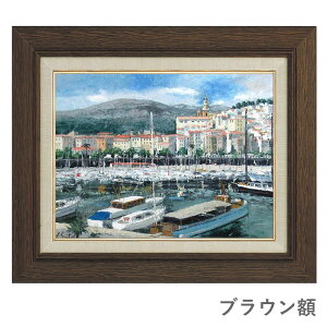 油絵 絵画 直筆仕上げ ベルト・モリゾ ニースの港 アートフレーム サイズ 額入りS:ブラウン 【油彩 布キャンバス 国内生産】 絵画 販売 風景画 321×271mm 複製画 送料無料 絵画 販売 インテリア...