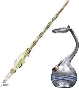 ガラス瓶とガラスペンの2点セットガラスペンとペン立てにもなるガラス瓶(ペンホルダー)のセットで、インテリアとしてもお洒落です。机上に置き眺めているだけでも美しい商品です。ガラス瓶の下部にはインクをいれる事ができます。上