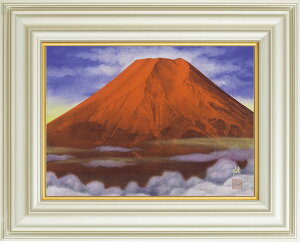 【画 題】赤富士 ※肉筆作品※ 【解 説】末広がりの美しい富士山。古来より人々の心の拠り所となってきた富士が赤く染まる姿は、縁起の良い構図として好まれています。絵具を厚く重ねて描き上げたこの作品は、お部屋に明るさと温も