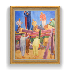 仕様・複製名画:デジタル印刷専用布にジクレー出力、ゲルメディウム作業(油彩画風直筆仕上げ=絵具で描いた様な立体的な厚みのある仕様)。・ゴールド樹脂彫刻モールディング、アクリルカバ-付き、マット付き、裏面テープ貼り、壁掛け付