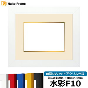 商品名 水彩額 5906 水彩F10(530×455mm)専用 レッド/イエロー/ブルー/ホワイト/ブラック 前面UVカットアクリル仕様 マット付き(金色細縁付き) 色 フレームカラー:レッド/イエロ...