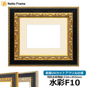 ヘコミあり品】水彩額 SF520 水彩F10(530×455mm)専用 ブラック 前面UVカットアクリル仕様 マット付き 色 ブラック その他の色 ゴールド シルバー 白 木地 商品情報 水彩F10(530×455mm)専用...