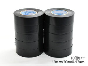 絶縁テープ 19mm×20m×0.13mm 10巻入り 厚さ0.13mm 幅19mm 長さ20m 色 黒 ●自動車の電気配線や電気器具内の配線の絶縁用に開発されたポリ塩化ビニール粘着テープです。 ●高...