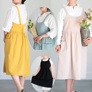 ※ネイビーは素材がポリエステル・綿となっています。 エプロン おしゃれ かぶるだけ ワンピース 薄手 綿 コットン 日本製 生地 ウエストゴム ショート ショート丈 レディース 無地 エプロンドレス...