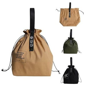 お弁当袋 ランチバッグ 綿100%のキャンバス生地 保冷 保温 内側断熱アルミウール綿 巾着バッグ 耐久性 防水 仕事/学校/屋外ピクニックなどに適しており でシンプルな 大容量/便利/無地で/ファッション 男女兼用...