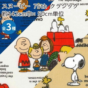 【PEANUTS】世界中で愛されるスヌーピーとピーナッツの仲間たち。 キッズも大人も幅広い年代で楽しめるファブリックシリーズです。 PEANUTS75周年デザインを使用したクラシックな柄です。