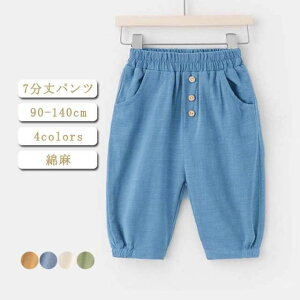 【綿麻】【7分丈パンツ】【90-140cm】【4colors】夏ファッションに大活躍の一枚です。涼しげな綿麻素材の7分丈パンツ。ウエストゴムなので、楽ちんです♪足裾にゴムが付いてる仕様で虫対策にも役立つ♪ルームウェア...