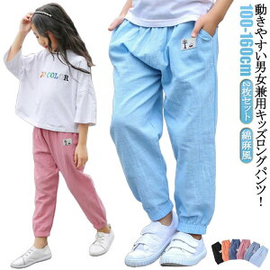 110-160cm!柔らかな綿麻素材で通気性、吸湿性、肌触りも良く、夏にぴったり。裾口ゴムとウエストはゴムで伸縮性があり、着やすさ抜群夏のお出かけや通園、通学、ルームウェアにぴったり! サイズ 110...