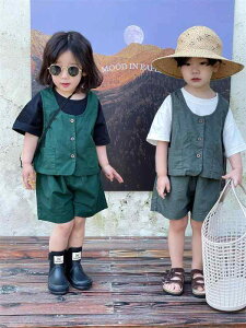 ・カテゴリ: キッズセットアップ・性別: ユニセックス・スタイル: シンプル・セットタイプ: ベスト&ハーフパンツ・対象年齢: 中小児向け (3〜8歳)・季節: 夏・袖丈: ノースリーブ・フード: なし・パンツ丈: ハーフ丈・生地加工...