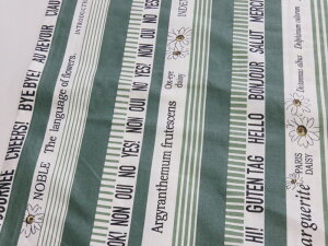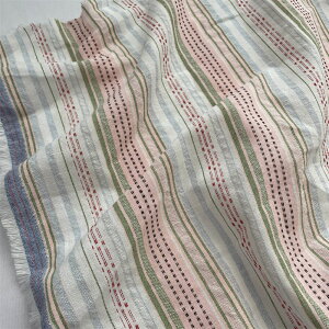 小さく描かれたドット柄が連なってストライプになっています。濃淡のグラデーションの利いた色合いも素敵です。赤と緑の2色展開です。エプロンやバッグ、ポーチなどにいかがでしょうか? 質の良い綿生地(エコテックス)で...