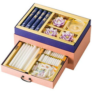 浄雅(蓮紫) 線香・ローソクセット高級感あふれる「貼箱」、引き出しは便利な上下2段組みで使い終わった後も経本や数珠等、お仏壇まわりの小物の収納に重宝。長さ2.6cm五色蝋燭38g×1袋・直径5.8cm...