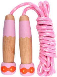 縄跳び 幼児 子供用 なわとび ジャンピング ロープ 木製グリップ 長さ調整可能 大人用 幼児 体育祭 運動 (ピンク)