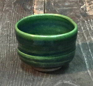 直径7cm H5cm 吸い込まれるような深い緑色でごく一般的なお酒もワンランクアップしたような気分♪ 織部は深い味わいと安土桃山時代から続く格調高い器で、料理を花にたとえるなら器は葉。千利休の弟子である古田織部も器を葉っぱにみたて