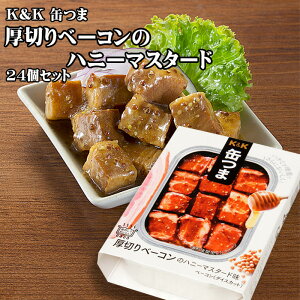肴で、酒はうまくなる。 缶つまは、お酒に合う厳選された素材や、素材を活かした製法、メニューづくりにこだわり続けます。 サイコロ状にカットしたベーコンを使用。 はちみつとマスタードで味付け、甘みと酸味が織りなす至福の逸品...