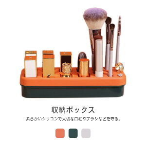 収納ボックス柔らかいシリコンで大切な口紅やブラシなどを守る。 散らかしがちな口紅、大きな化粧ブラシ、ネイルなどを差し込むだけでスッキリ収納できる。 一つのボックスにそれぞれ3種類の大きさのスロットがついてあります 口紅だけ