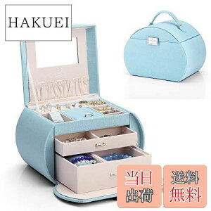 半円形ジュエリーボックス 中規模の宝石箱 母の日スイーツなプレゼントミラー 鏡付き があり 収納力も ピアス ネックレス 指輪 リング アクセサリー 指輪置き ジュエリーバッグ 5色 (青) 【デザイン】デザインがかわよくておし