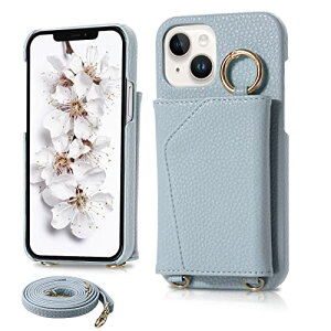 カバー 背面カードポケット付き 耐衝撃 アイフォン14 6.1 インチ スマホカバー ミラー 化粧鏡付き 横置き可 便利 多機能 落下保護 水色 対応機...